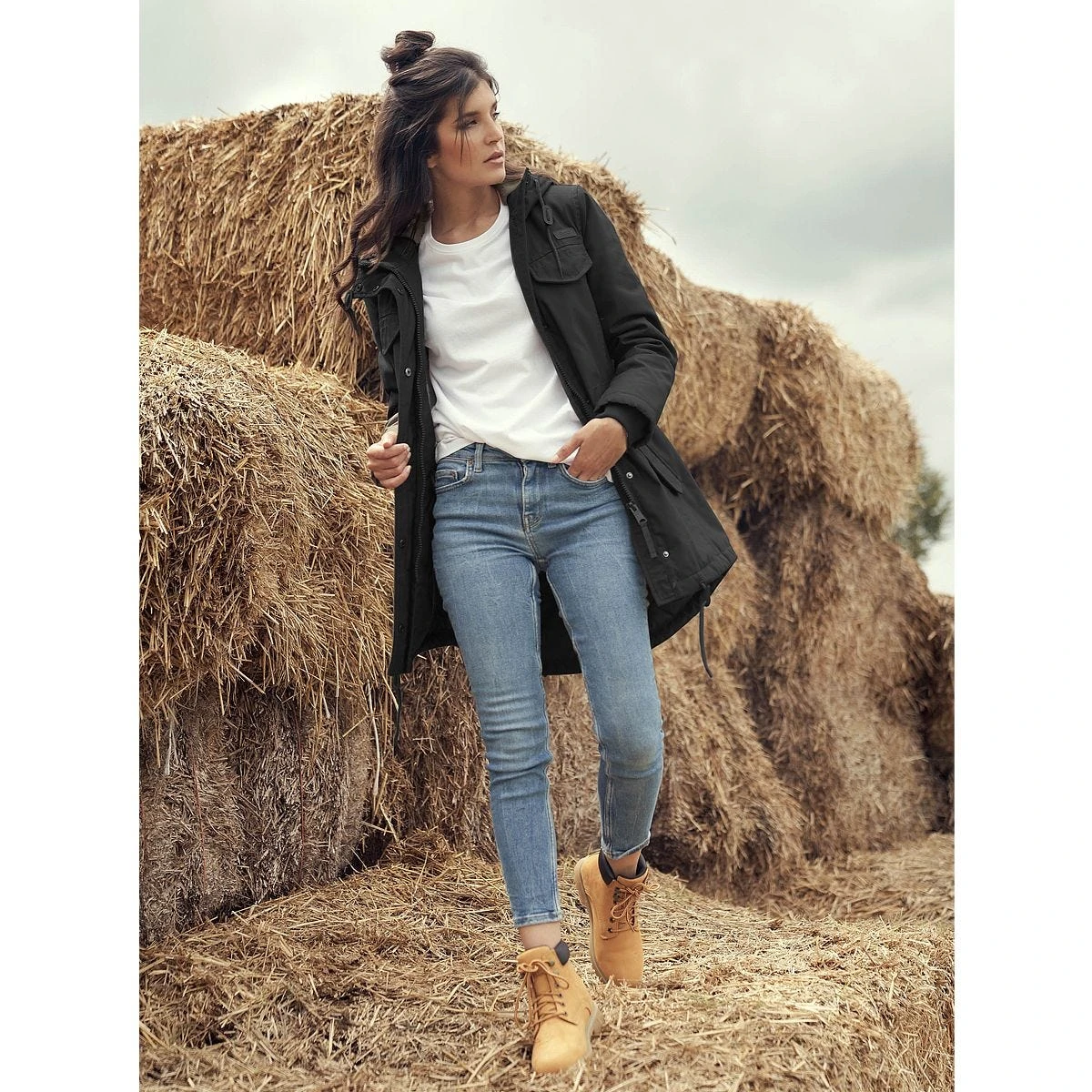 - Women’s classic long parka with vintage feel and look